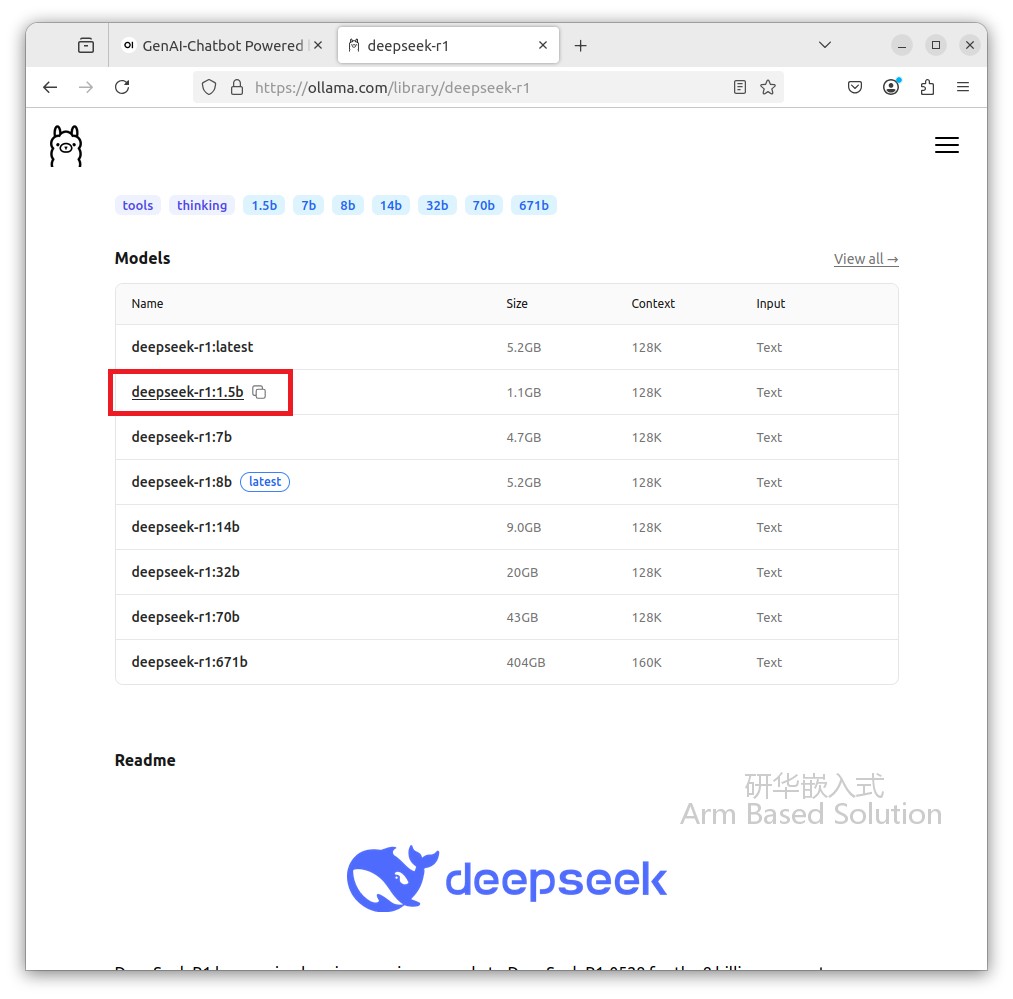 在Ollama.com上搜索deepseek-r1模型: